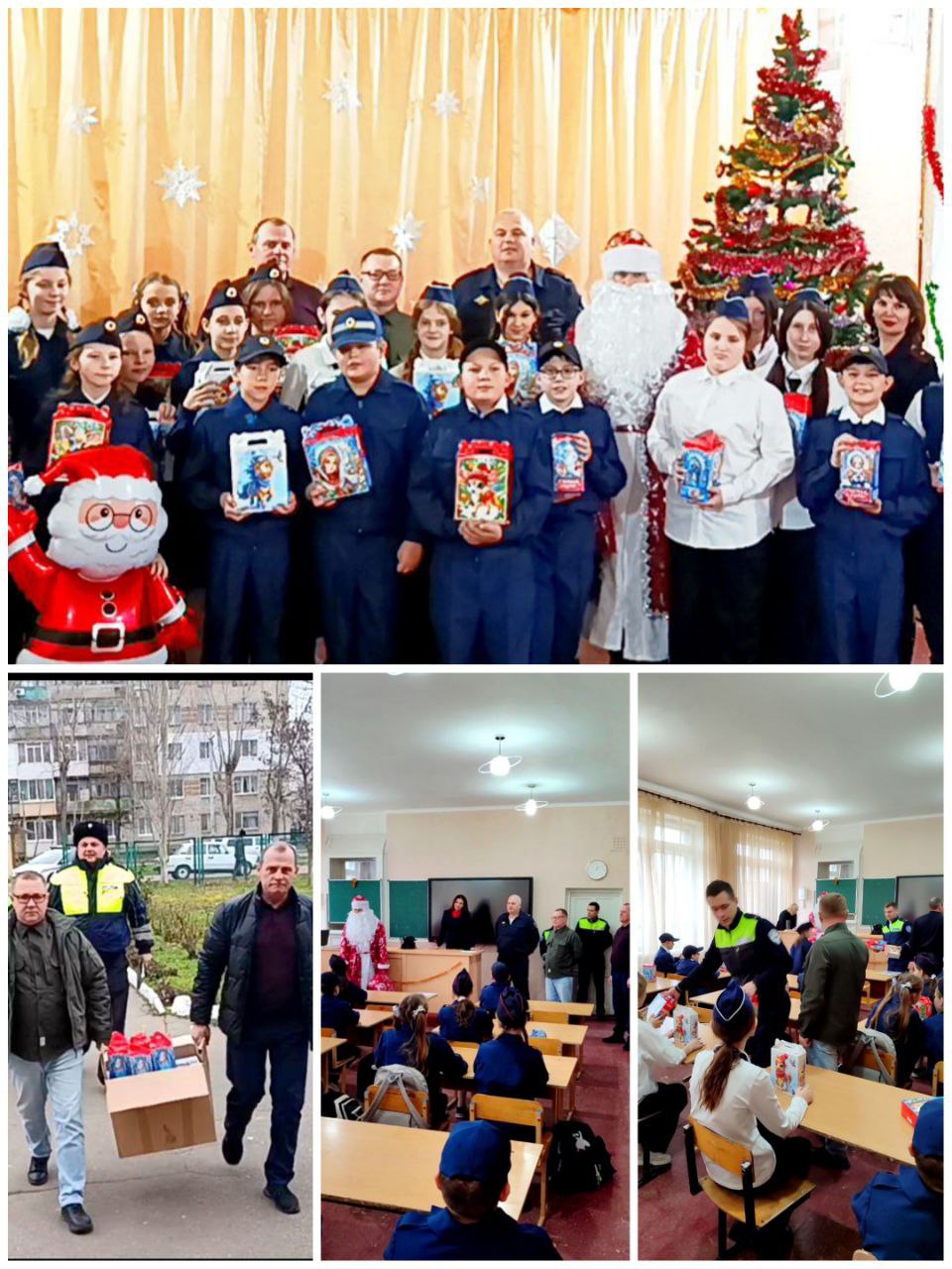 В рамках Всероссийской акции «Полицейский Дед Мороз» сотрудники Отдела МВД России «Бердянский» совместно с заместителем главы Бердянского муниципального округа и представителем партии «Единой России» посетили кадетский класс в ГБОУ ОО ЗО «СОШ № 20 им. А. Колесникова».