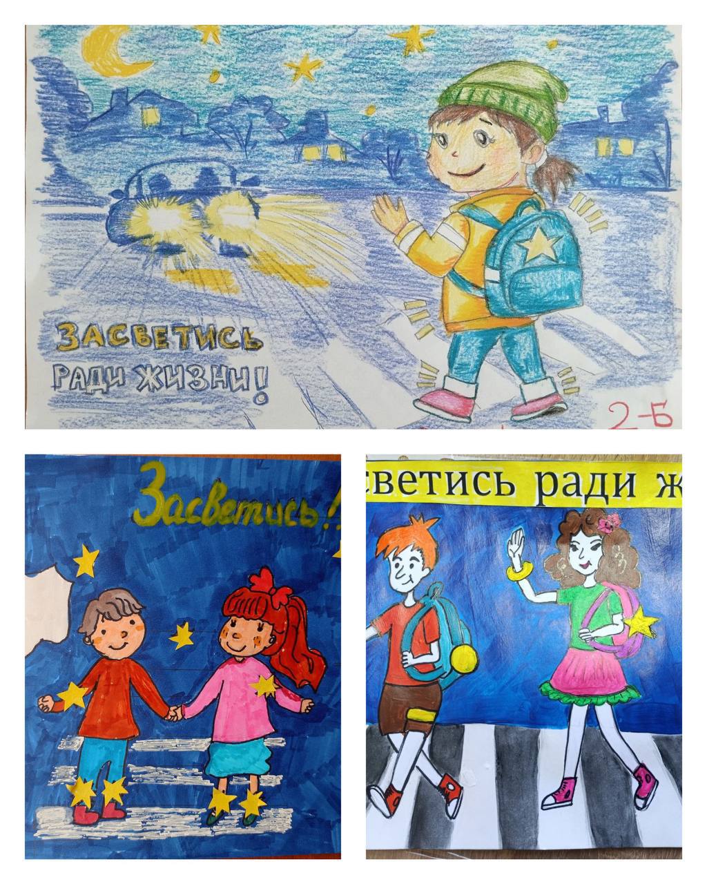 Своими художественными работами дети призывали пешеходов и водителей соблюдать Правила дорожного движения и использовать световозвращающие элементы.