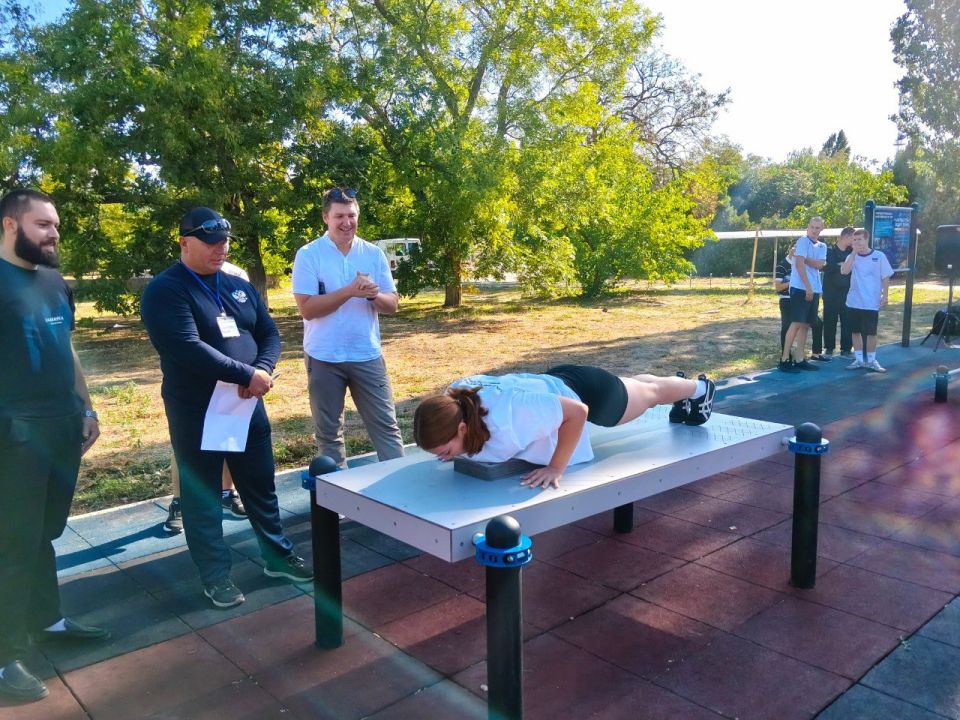 В преддверии Дня города на спортивной площадке Городского Дворца спорта прошло яркое и масштабное соревнование среди студентов Бердянска по выполнению нормативов комплекса «ГТО».