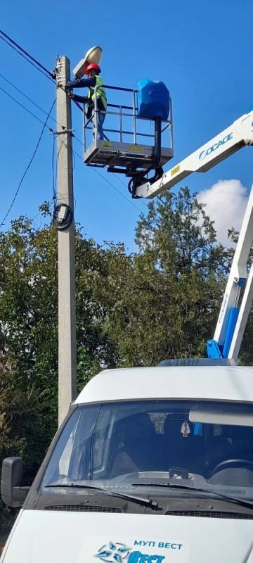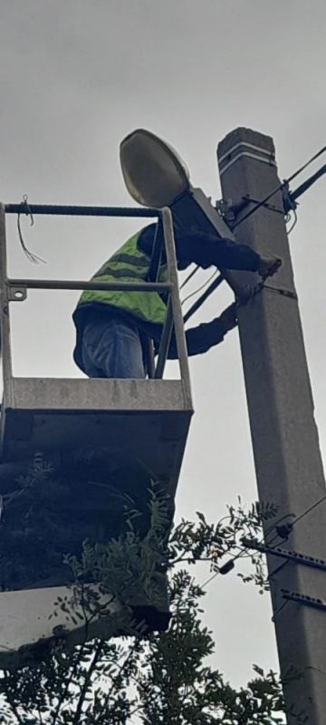 Сотрудники МУП «ВЕСТ» Бердянского МО продолжают трудиться над восстановлением уличного освещения на территории округа