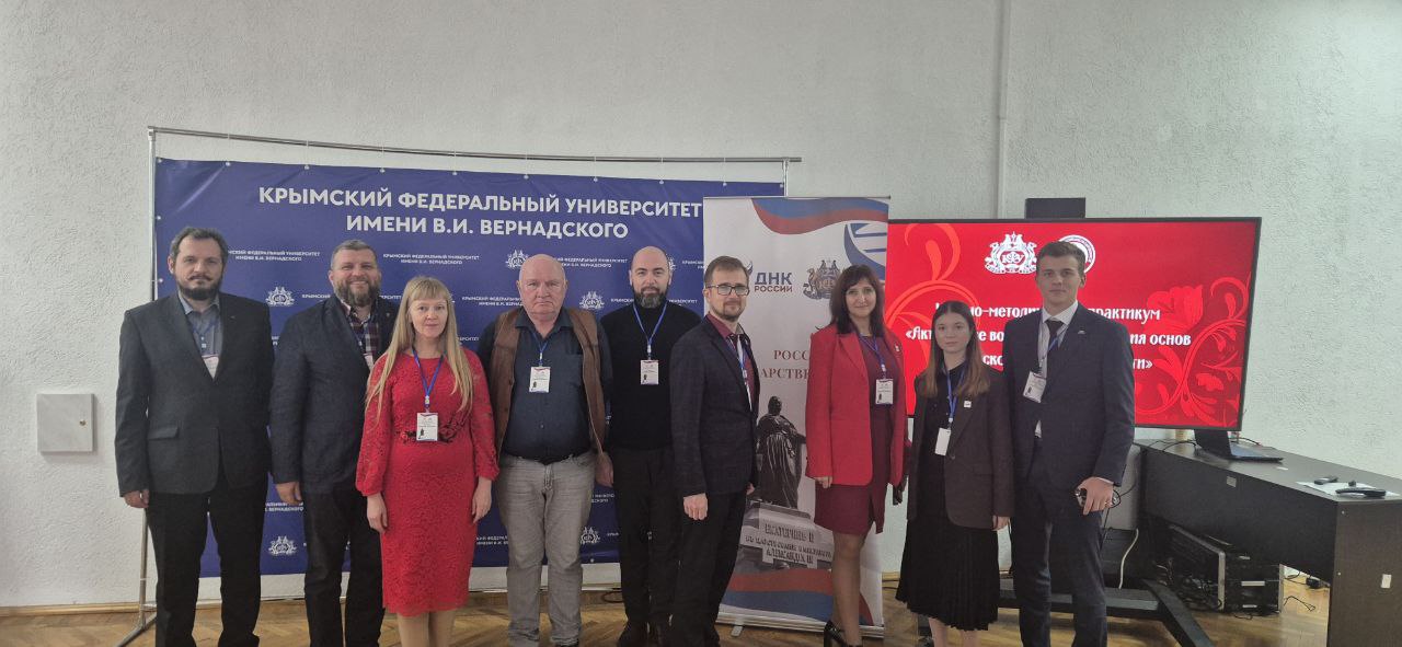 Делегация преподавателей Азовского педагогического под руководством проректора по воспитательной деятельности и социальному развитию Тимура Камаева принимает участие в научно-методическом практикуме по курсу «Основы российской государственности», который стартовал в КФУ им. В. И. Вернадского.