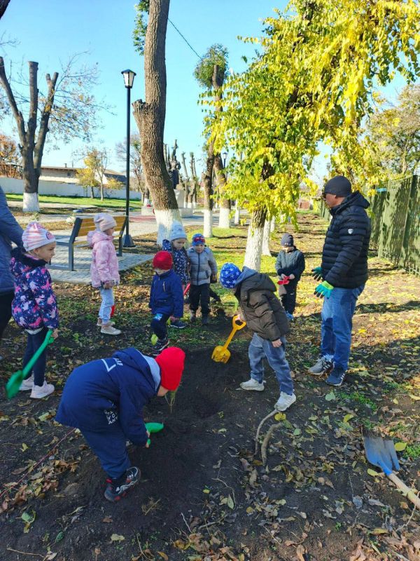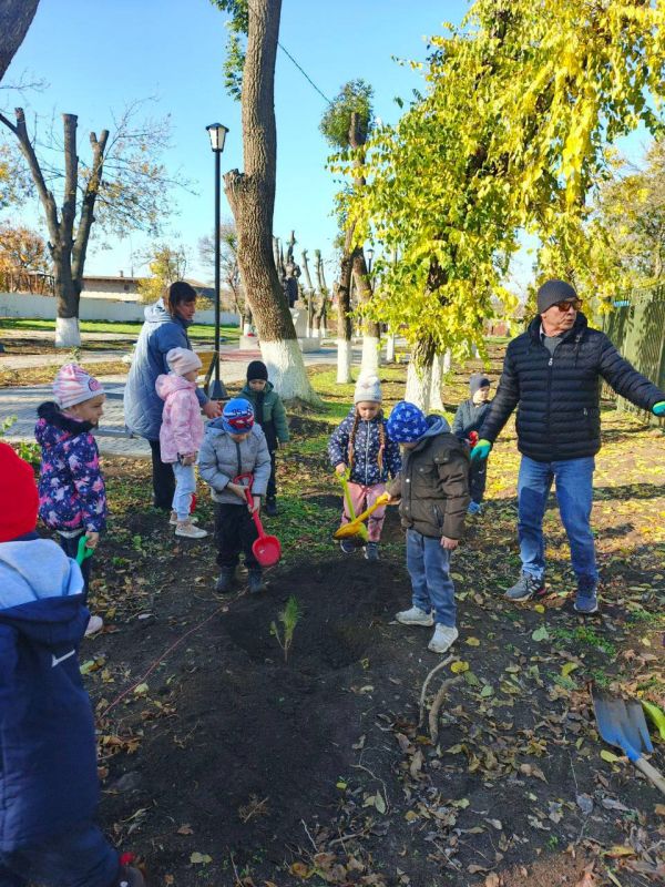 В рамках экологической акции, приуроченной ко Дню народного единства и по инициативе Администрации, воспитанники ГБУ ДОО ЗО «Азовский детский сад №4 «Жемчужинка» Бердянского района высадили молодые сосенки в парке Победы!