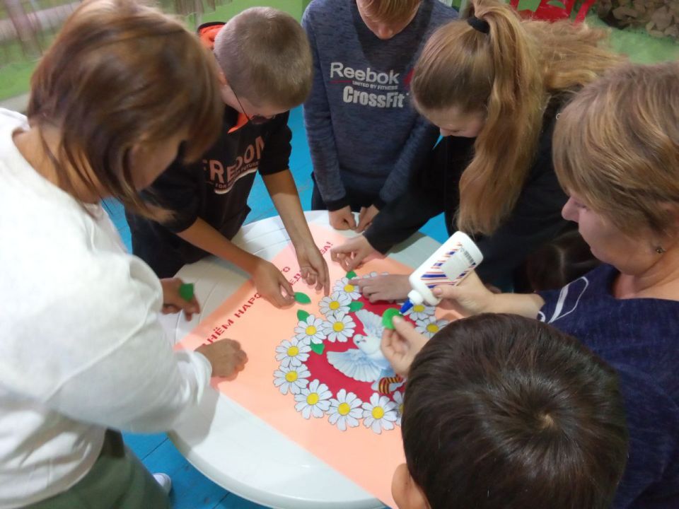 Мастер-класс объединил людей, увлеченных искусством, которые с энтузиазмом создавали уникальные композиции, используя яркие заготовки, клей и свою фантазию. Общая работа участников стала художественным выражением духа национального единства, напоминая о сплоченности народов России.