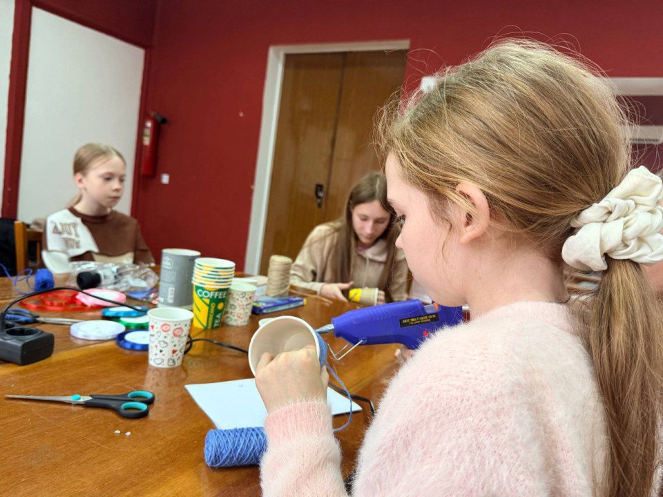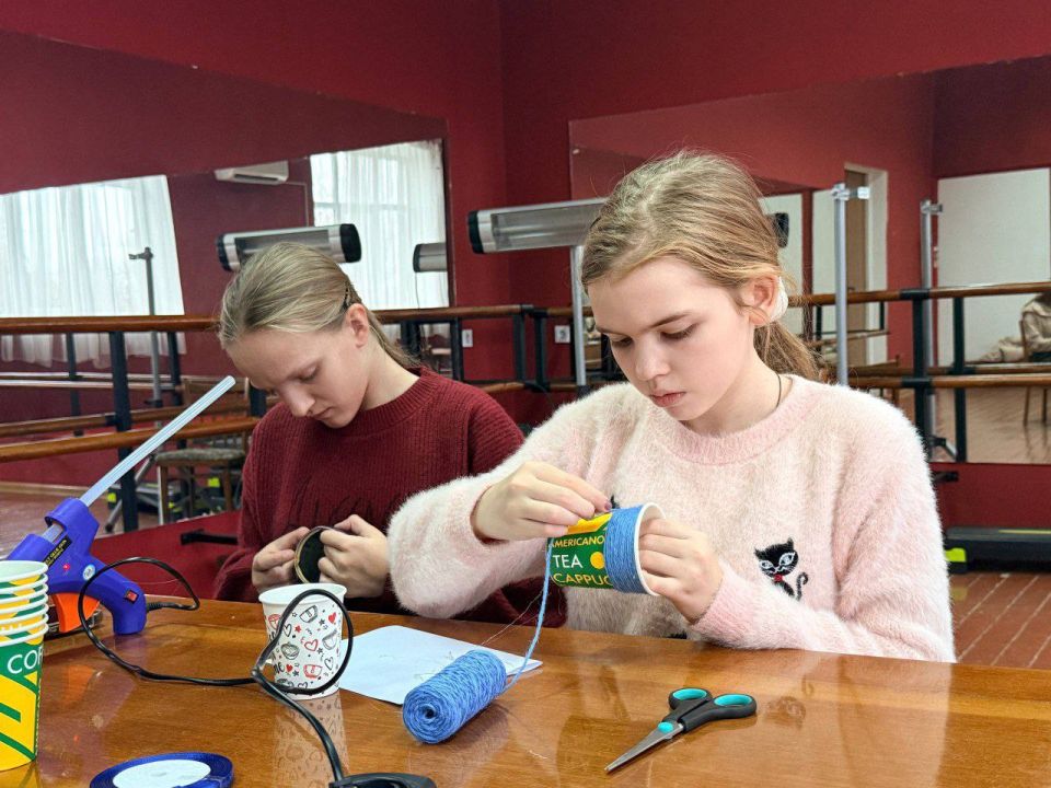 В ходе мастер-класса участники познакомились с техниками декорирования и смогли применить свои умения на практике. Молодые девушки с увлечением украшали свои стаканы лентами, бусами и другими элементами декора, создавая уникальные и стильные аксессуары для письменных принадлежностей.