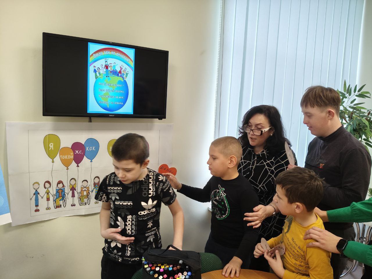 На мероприятии дети просмотрели слайды с изображением людей с разными видами инвалидности, с помощью которых расширили свои знания о том, как люди с ограниченными возможностями живут, работают, отдыхают и достигают своих целей. Дети участвовали в тематических играх, а так же создавали коллаж «Я такой же, как все».