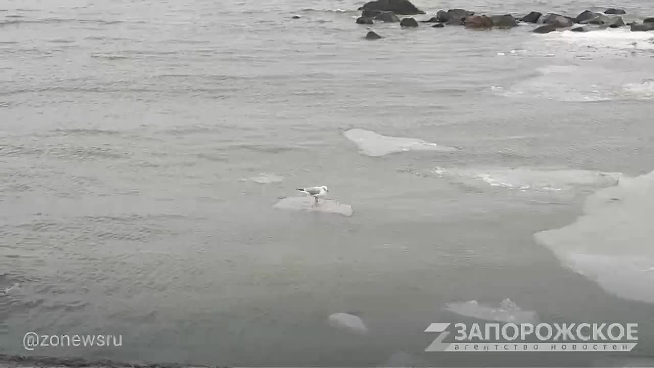 Редкая картина: холодное море тёплого Бердянска, сверкающие льдины так и незамерзшего залива плывут в волнах, а сверху слышен звонкий крик чаек. Но вот удивительное зрелище: чайки вовсе не сидят смиренно на берегу, а лихо рассекают волны верхом на льдинах!