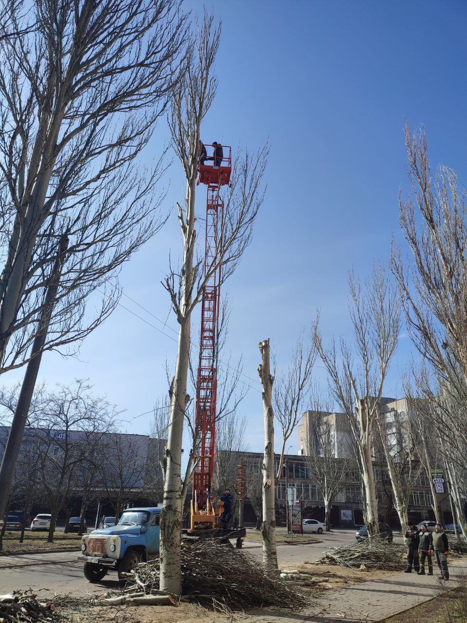 Сотрудники МБУ «Зеленхоз» в сотрудничестве с МБУ «Благоустройство. Бердянск» проводят обрезку аварийных веток, сухостоя и повреждённых деревьев. На прошлой неделе работы велись на Мелитопольском шоссе, на этой — по улице Горбенко.