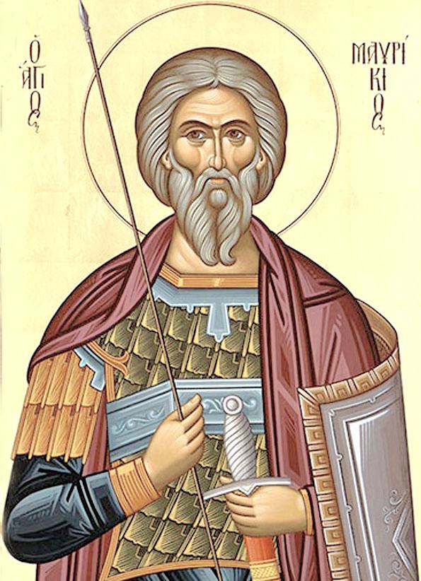 Святой Маврикий жил на рубеже III–IV веков и был римским военачальником. Вместе с сыном Фотином и 70 воинами он тайно исповедовал христианство, несмотря на суровые запреты. Когда власти узнали об этом, император прикажет казнить сына на глазах у отца, а затем всех мучеников обмажут мёдом и привяжут к деревьям на болоте. Десять дней насекомые будут терзать их, но даже такие страшные пытки не заставят воинов отречься от веры.