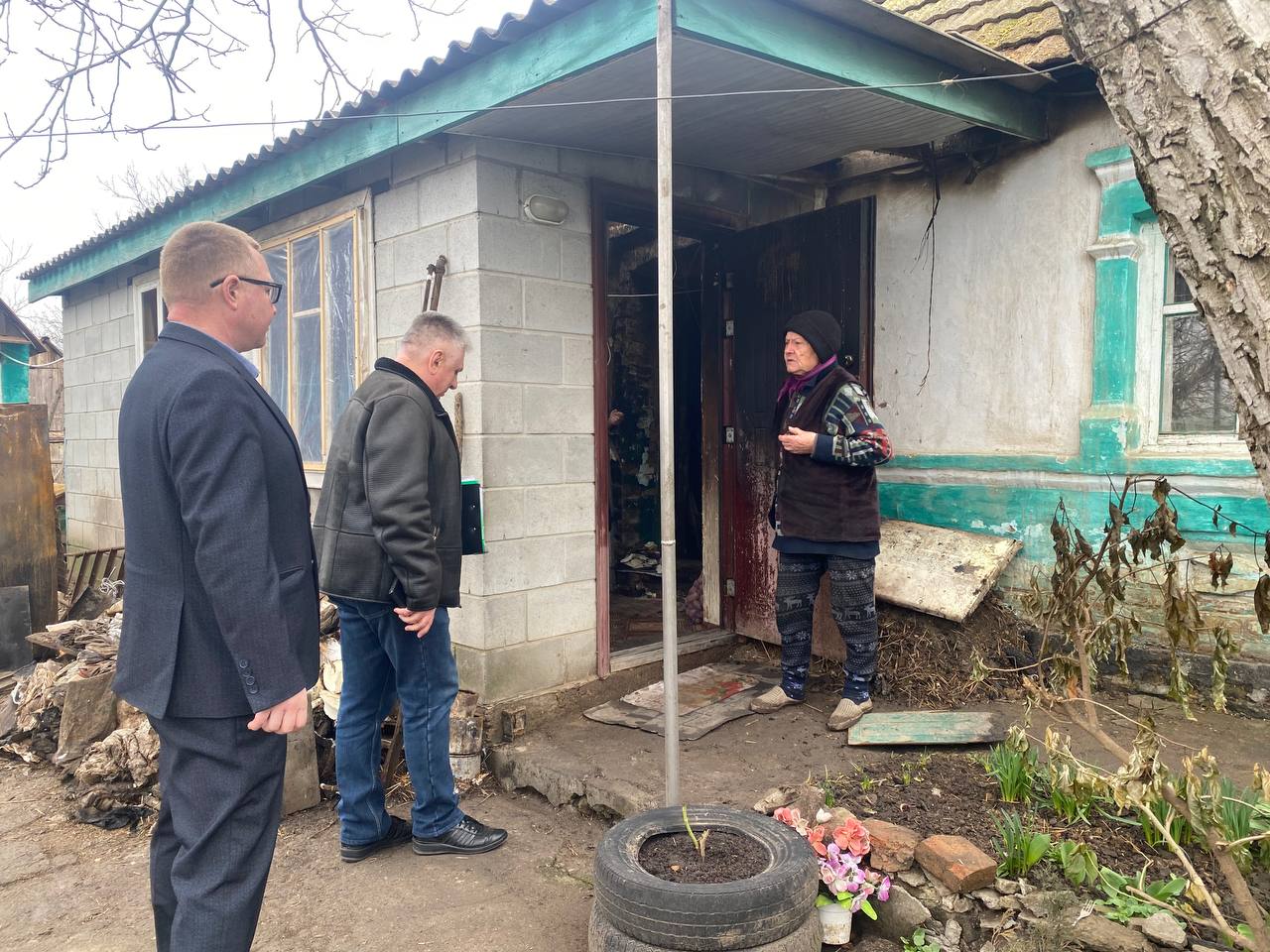 Заведующий сектором социальной защиты населения Бердянского МО Василий Глеба совместно с представителем региона-шефа Чувашской Республики Александром Филипповым посетили село Осипенко. В рамках поездки они осмотрели частное домовладение, пострадавшее от бытового возгорания: в результате происшествия обгорела часть дома и провалилась крыша.