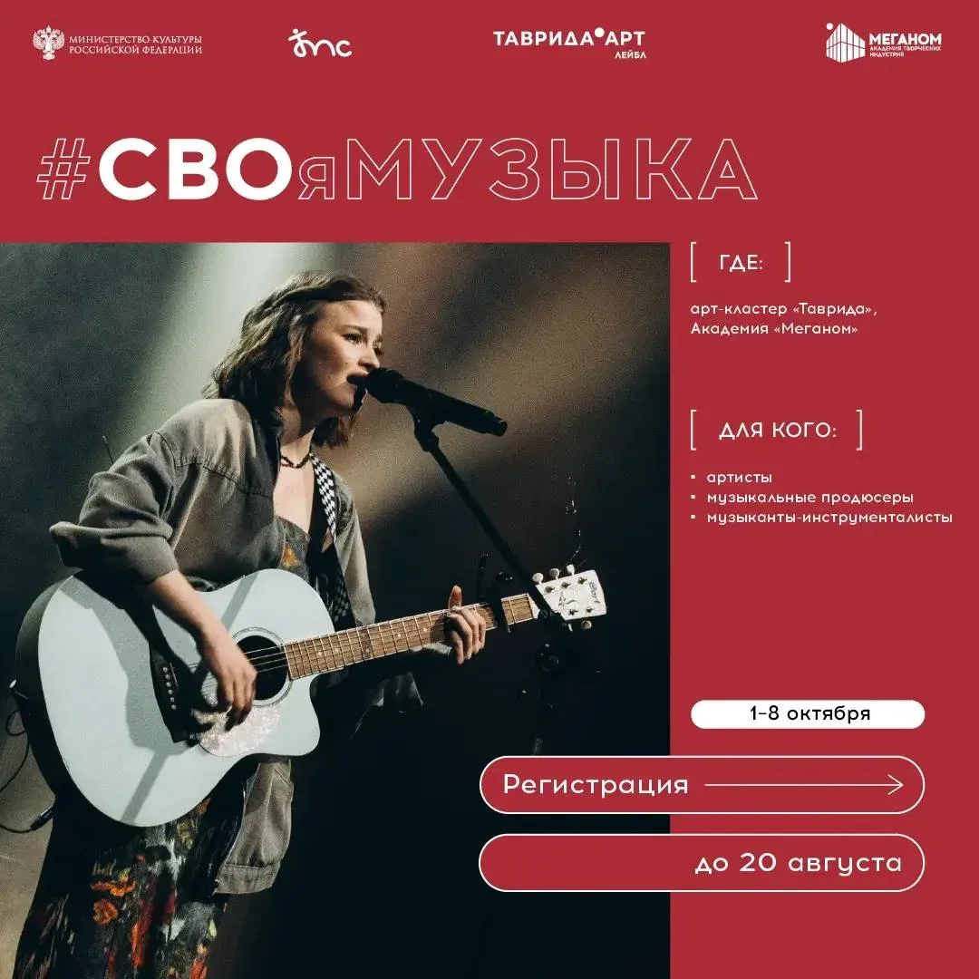 С 1 по 8 октября в Академии творческих индустрий «Меганом» (проект «Таврида.АРТ») при поддержке Минкультуры России пройдет программа «#СВОяМУЗЫКА». Она направлена на создание музыкального контента, основанного на личных историях участников и ветеранов СВО, а также членов их семей.