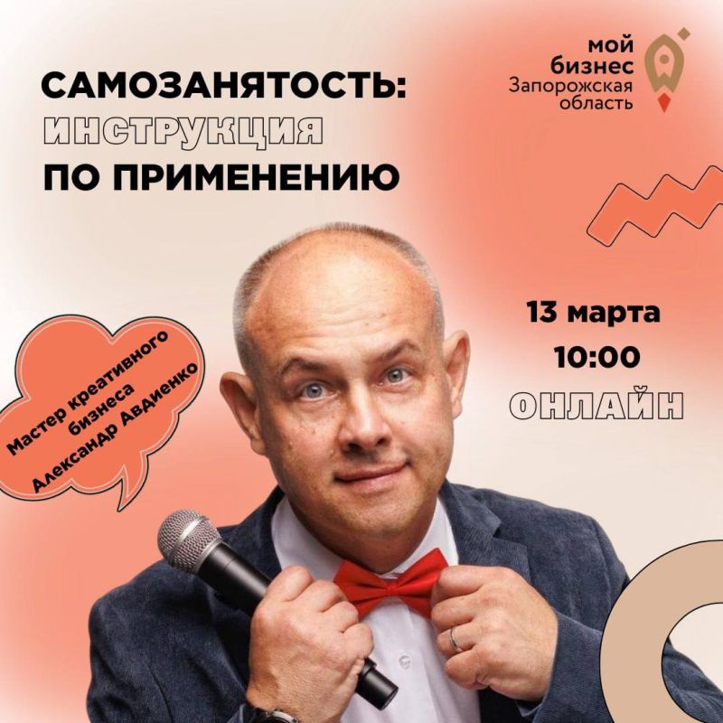 13 марта (четверг) в 10:00 Центр “Мой бизнес” Запорожской области приглашает предпринимателей региона принять участие в вебинаре «Самозанятость: инструкция по применению»