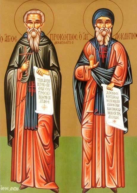Прокопий Декаполит жил в VIII веке в Декаполисе (союз десяти греческих городов, располагавшихся от Голанских высот до современной столицы Иордании). Он вел скромную монашескую жизнь в молитве и посте, пока не был вынужден противостоять вместе со сподвижниками иконоборческому движению.