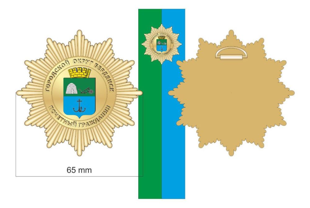 Каким будет нагрудный знак – можно увидеть на эскизном рисунке. Отметим, что ежегодно присваивать звание «Почетный гражданин городского округа Бердянск» можно будет не более, чем трем человекам.