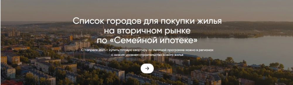 Правительственный портал «ДОМ РФ» опубликовал список городов, где россияне с детьми до шести лет смогут оформить ипотеку в 6% на вторичное жилье с 1 апреля 2025 г.
