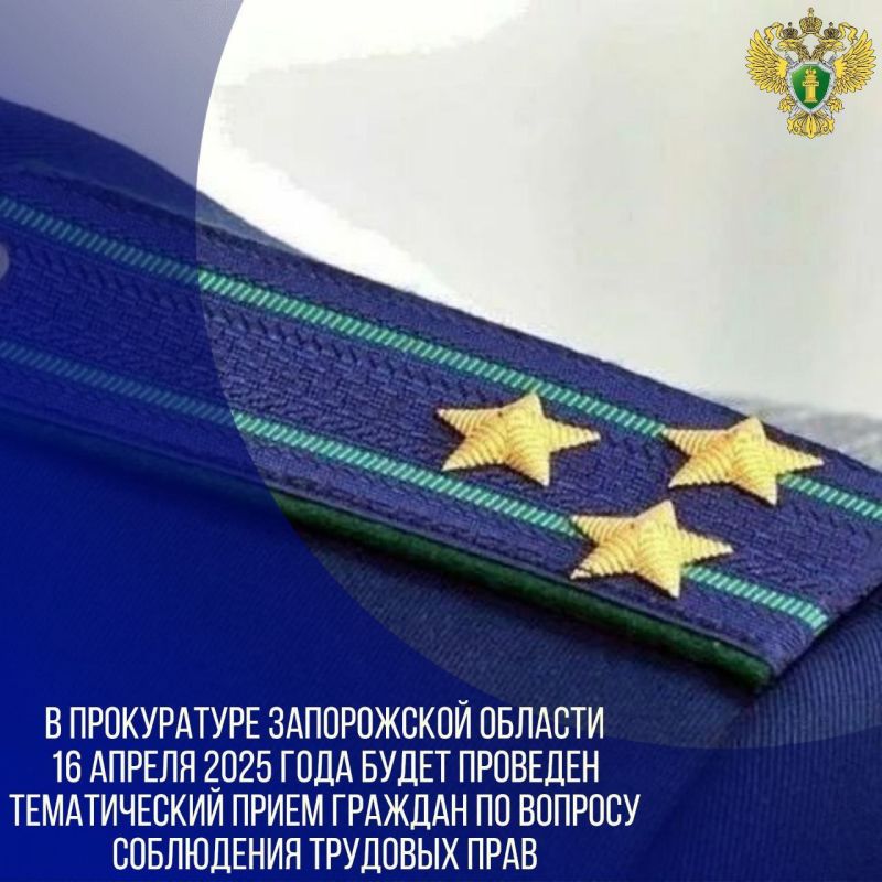 Руководством прокуратуры Запорожской области 16 апреля 2025 года будет проведен тематический прием граждан по вопросам соблюдения трудовых прав.