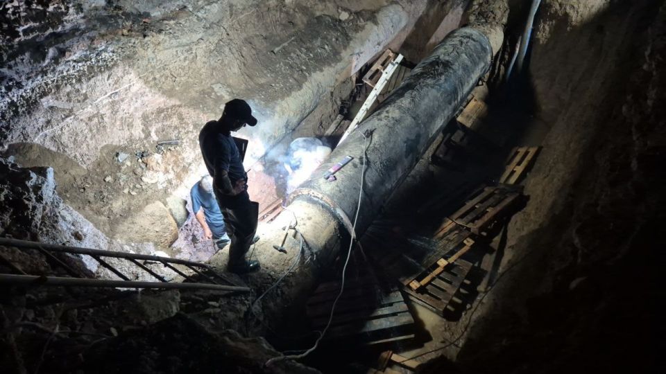 Станция первого подъёма уже качает воду на город. Однако сотрудники филиала "Бердянское ПУВКХ " ГУП ЗО "Вода Запорожья" еще не покинули место порыва на Бердовском водоводе.