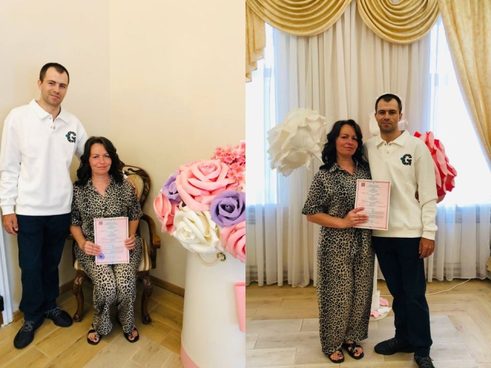 Трогательной стала в этот день регистрация брака участника СВО и его избранницы. Павел и Наталья уже имеют прекрасного сыночка и наконец решили заключить официальный брак.