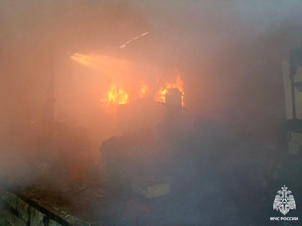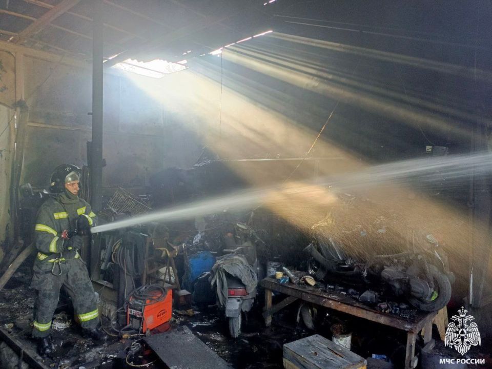 На момент прибытия пожарно-спасательной части, гараж горел изнутри. С помощью специальных инструментов спасатели открыли металлические ворота и оперативно ликвидировали возгорание. Площадь пожара составила 150 квадратных метров. Предварительная причина случившегося-неисправность электропроводки. К счастью, пострадавших нет.