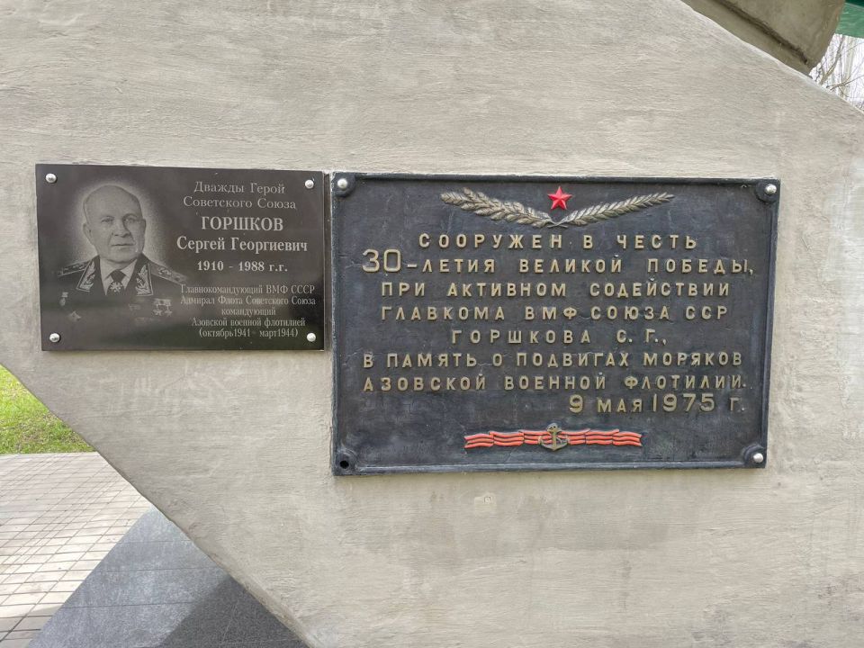 Сооружен в честь 30-летия Великой Победы, при активном содействии главкома ВМФ Союза ССР Сергея Горшкова, в память о подвигах моряков Азовской военной флотилии. 9 мая 1975 г.