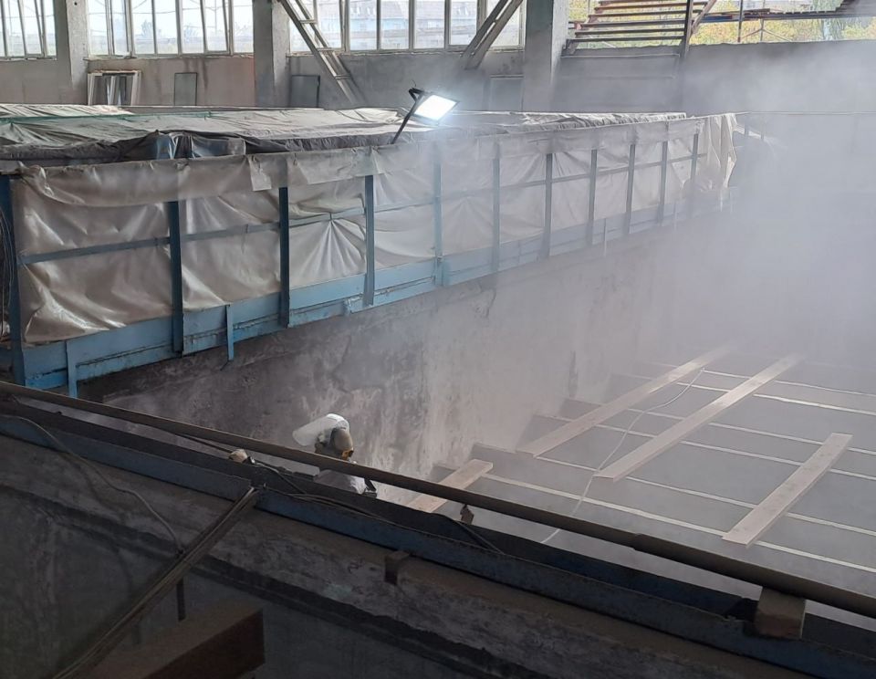 Отметим, что меняются не только трубы и задвижки. В отстойниках, в камерах реакции, в скорых фильтрах, полностью счищается старый гидроизоляционный слой (торкретбетон) с полным восстановлением торкретбетона конструктивного гидроизоляционного. В самом цеху водоочистки укрепляются строительные конструкции, плиты перекрытия.