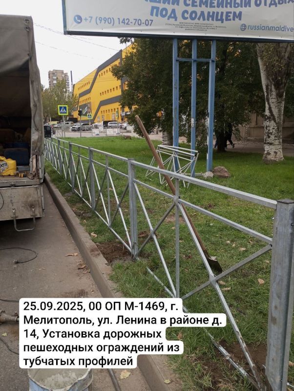 Новые "лежачие полицейские", пешеходные ограждения и сигнальные столбики смонтированы в Мелитополе и Бердянске.
