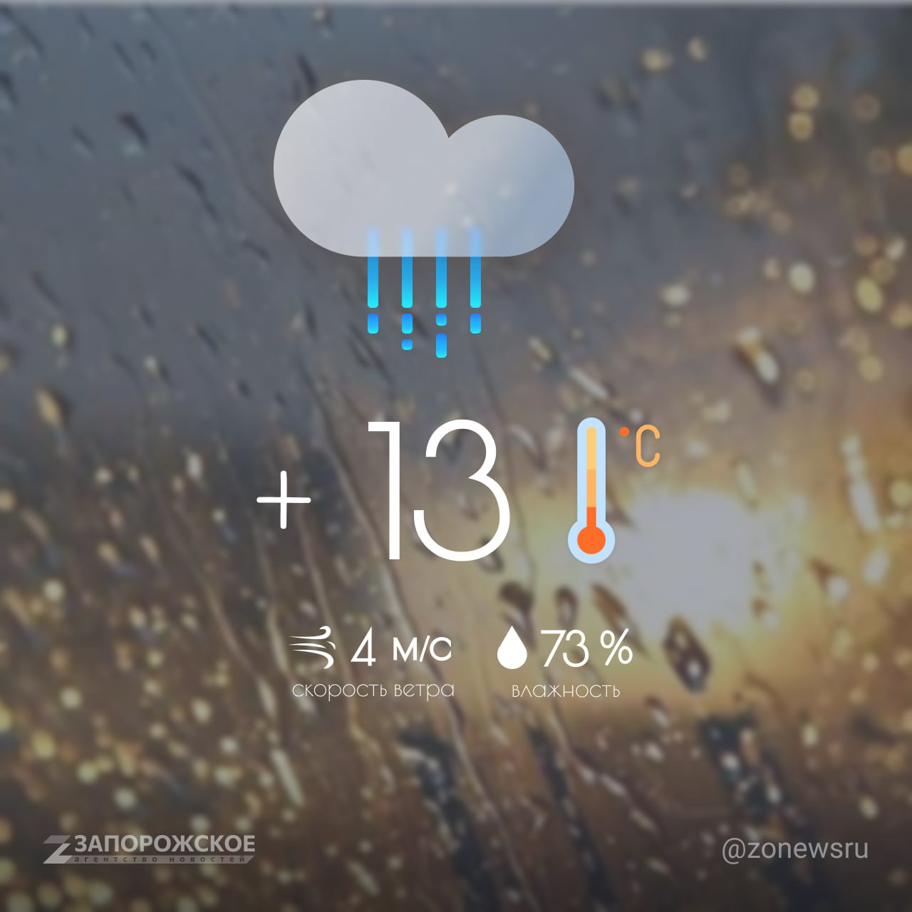 Мелитополь — +13 °С, пасмурно, небольшой дождь