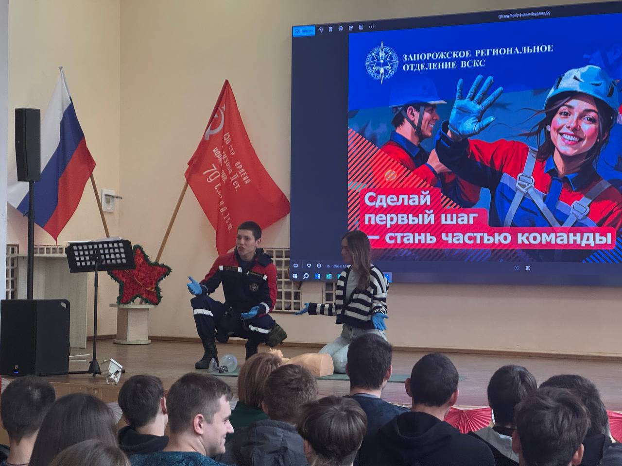 Одновременно в Бердянском машиностроительном колледже и филиале Мелитопольского государственного университета прошли агитационные встречи. Студенты-спасатели рассказали о миссии и задачах ВСКС, а также раскрыли перспективы, которые открывает участие в организации для активной и целеустремлённой молодёжи.