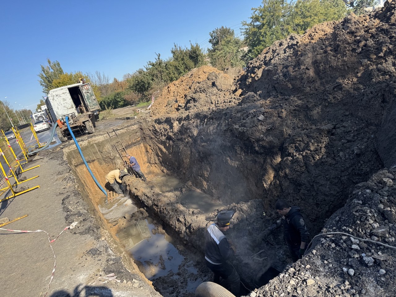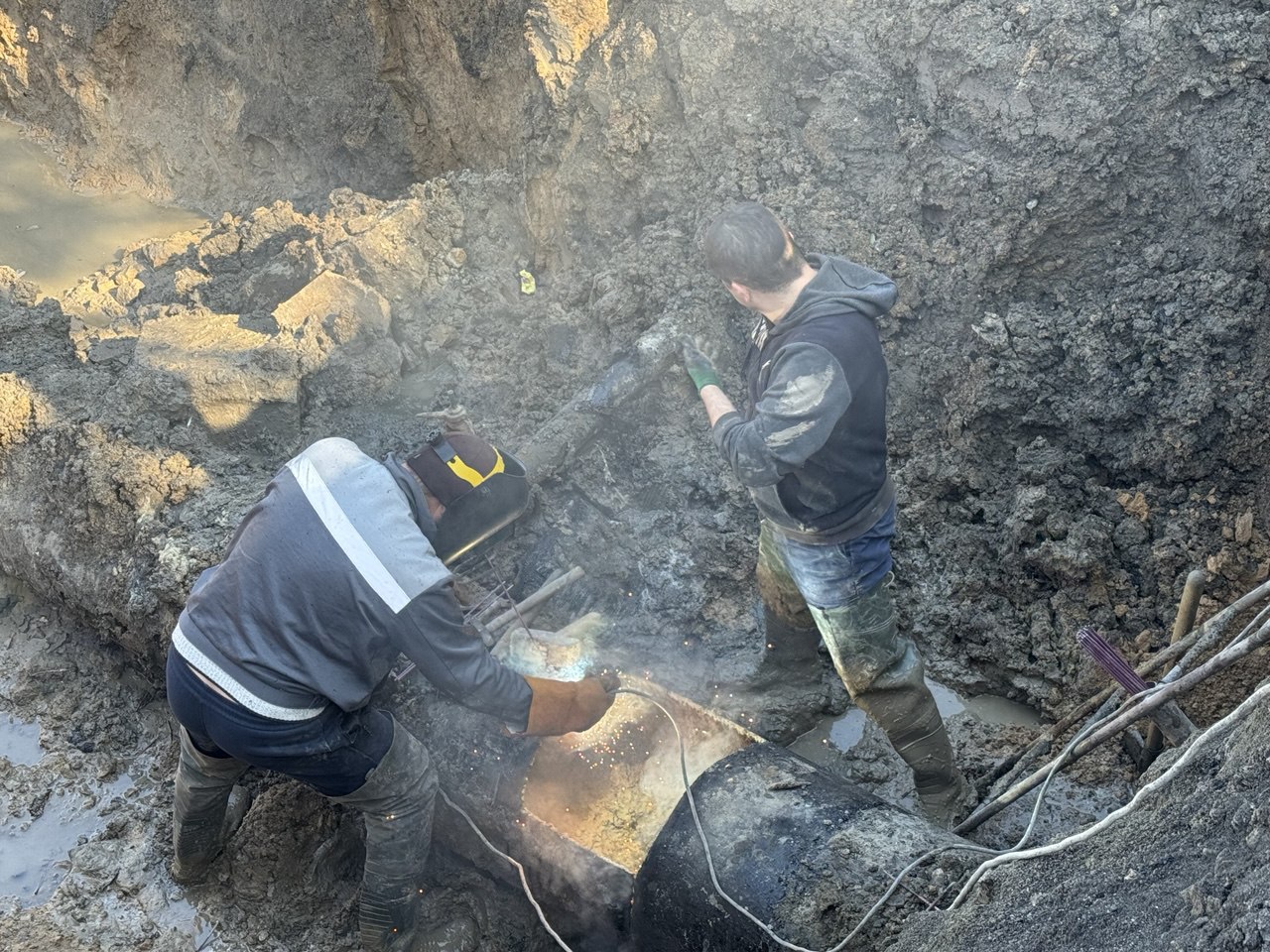 Сотрудники филиала «Бердянское ПУВКХ» ГУП ЗО «Вода Запорожья», проводят ремонтные работы на аварийном участке водовода В-1 диаметром 600 мм.