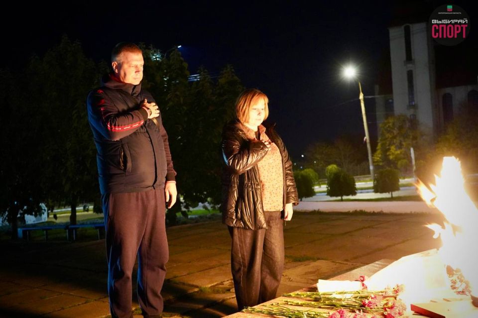 В рамках спортивного форума «Юг ЗаСпорт», который проходил в Бердянске, участники мероприятия совершили дань уважения и памяти. Спортивное сообщество возложило цветы к Мемориальному комплексу «Вечный огонь».