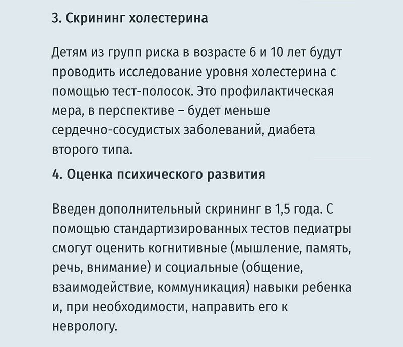 Некоторые плановые осмотры теперь проводятся в другие возрасты.