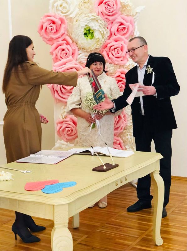 Сотрудники ЗАГСа Бердянска от души поздравили Игоря и Ольгу, отметив их союз как образец для подражания.