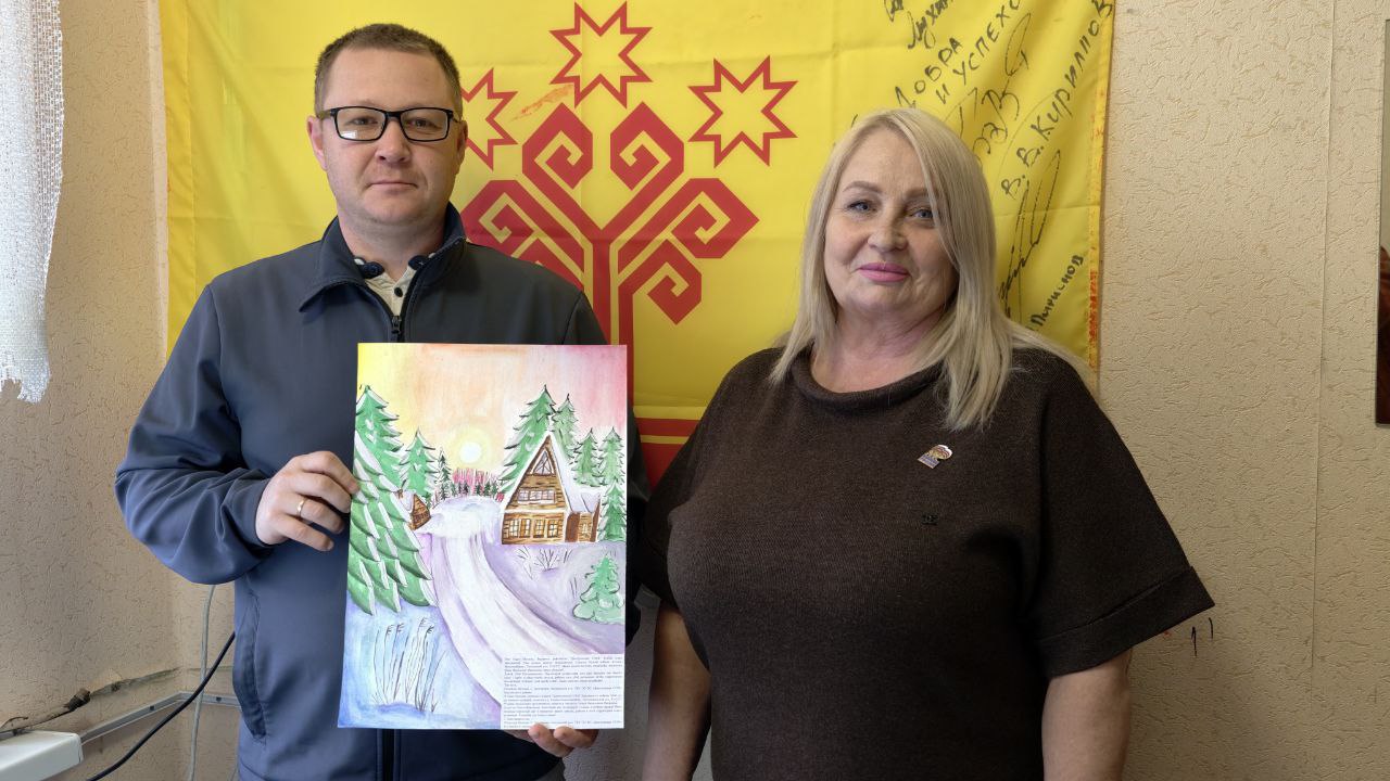 Картина и письмо были переданы представителю региона-шефа Чувашской Республики Александру Филипову председателем Совета депутатов Бердянского МО Светланой Грищенко.