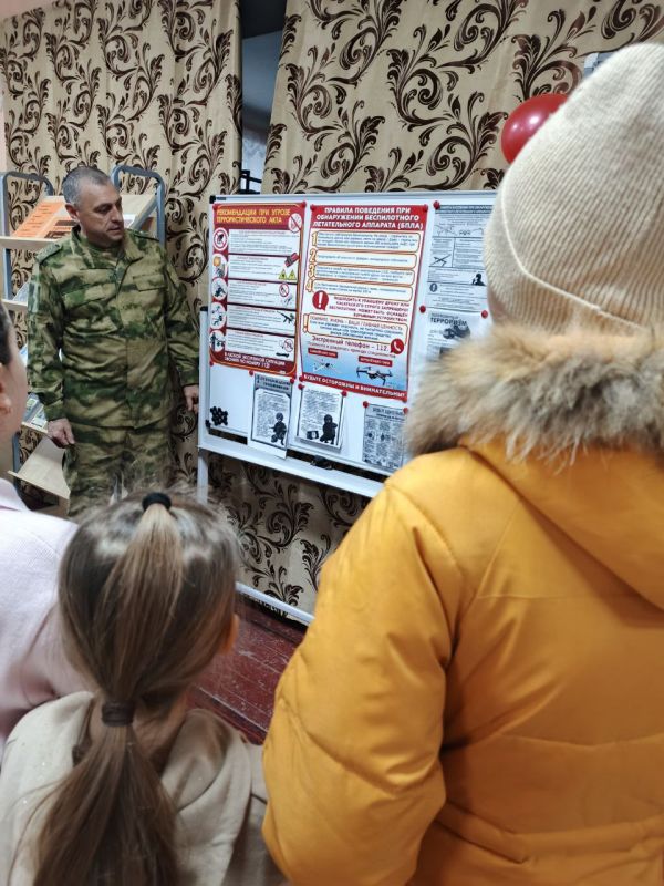 В Центральной библиотеке села Дмитровка состоялась профилактическая беседа «Мы за мир — мы против террора» с участниками вокального кружка «Мелодия». Мероприятие провёл военнослужащий Росгвардии, который в доступной форме разъяснил ребятам ключевые правила поведения в чрезвычайных ситуациях: как действовать при обстрелах и что делать при обнаружении взрывоопасных предметов.
