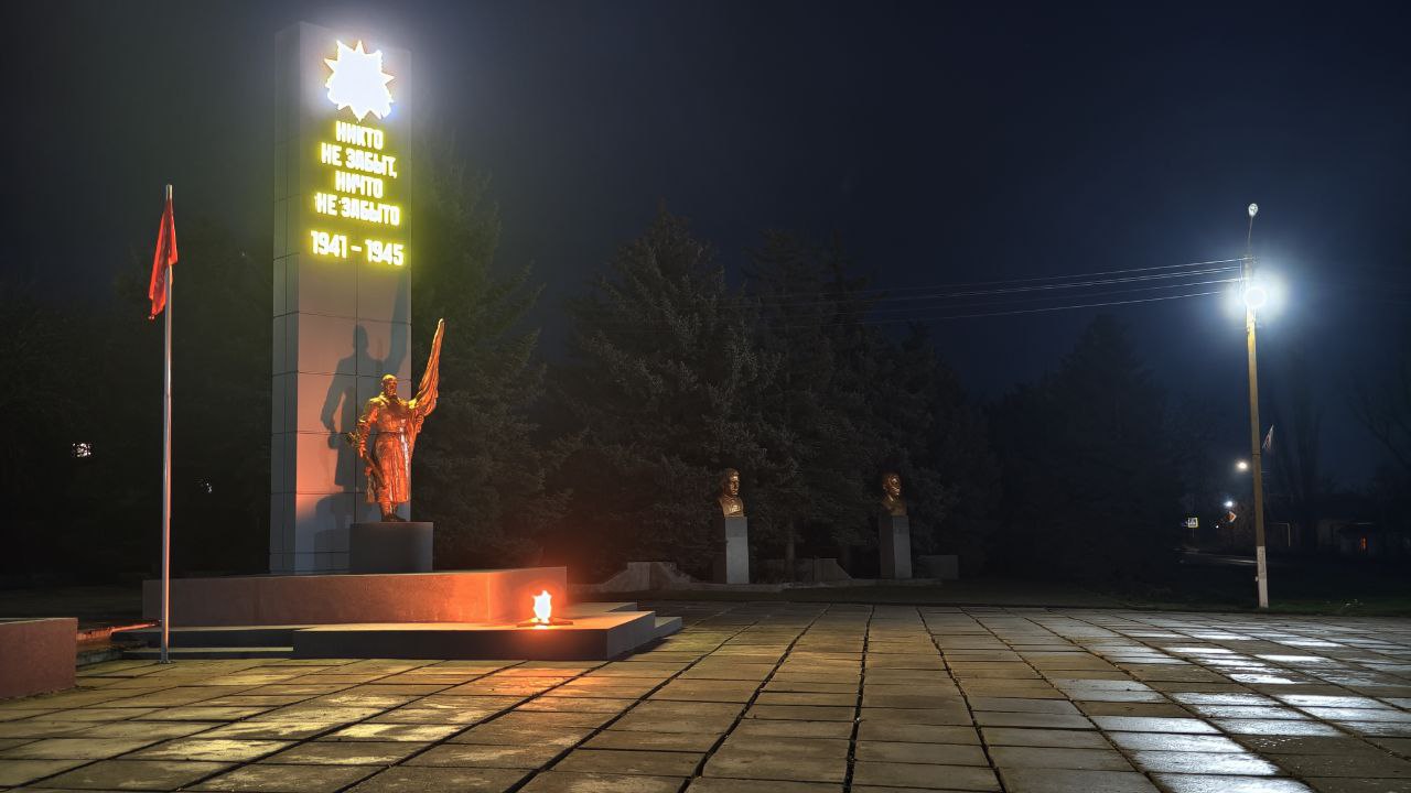 Ночной памятник воинам-односельчанам, которые не вернулись с полей сражений Великой Отечественной войны «Никто не забыт, ничто не забыто» в пгт Андреевка Бердянского района