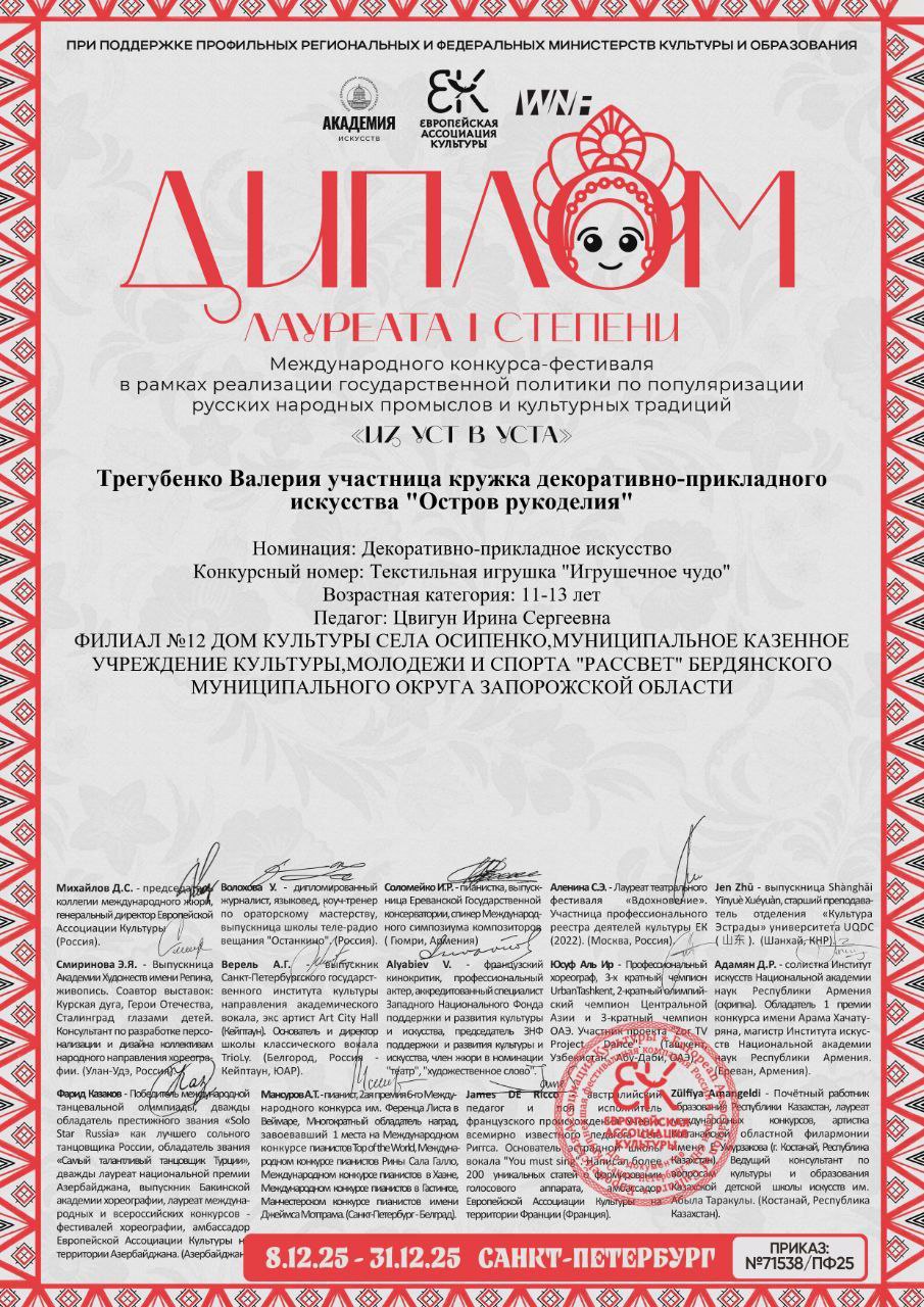 От всей души поздравляем юных мастеров и их наставников с заслуженными наградами! Пусть этот успех станет ступенью к новым творческим вершинам и ярким победам.
