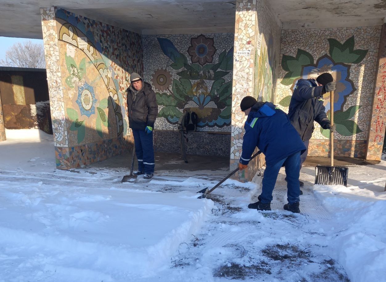 Очистка тротуаров, зон отдыха и парковок от снега и наледи: