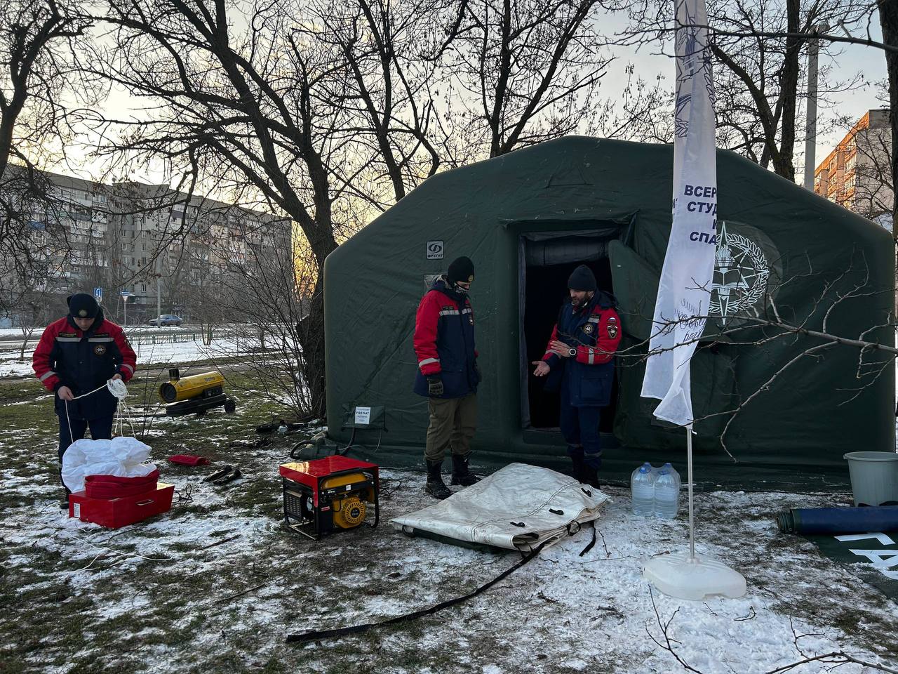 В этих пунктах жители могут согреться, подзарядить свои устройства, получить питьевую воду и горячий чай.