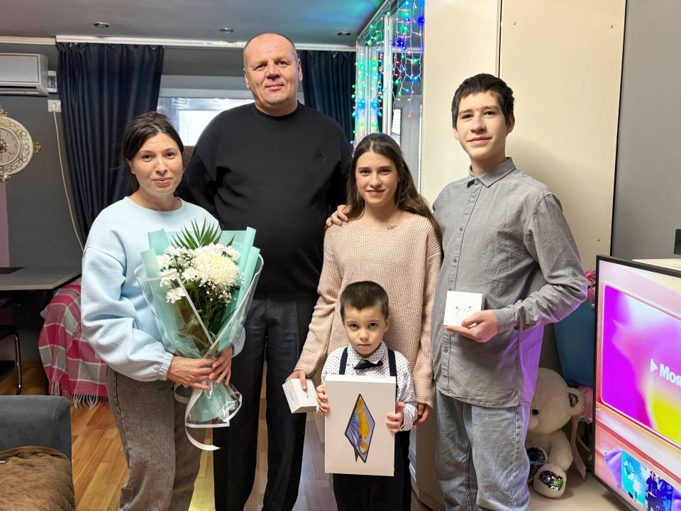 Депутат Бердянского городского совета Виктор Бардась снял шар с желанием 4летнего Николая и вручил ему подароксюрприз — планшет. Старшие дети Николая, 14летние двойняшки Марк и Виктория, получили беспроводные наушники.