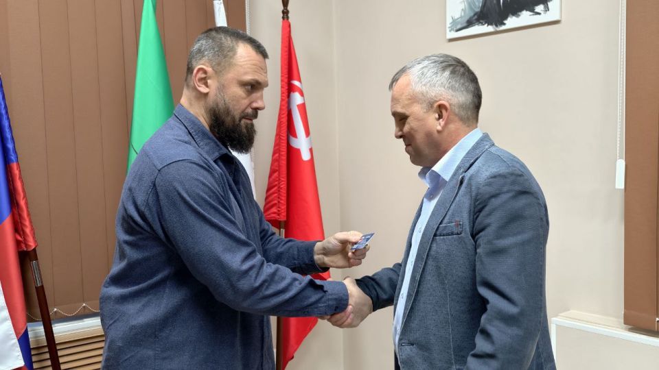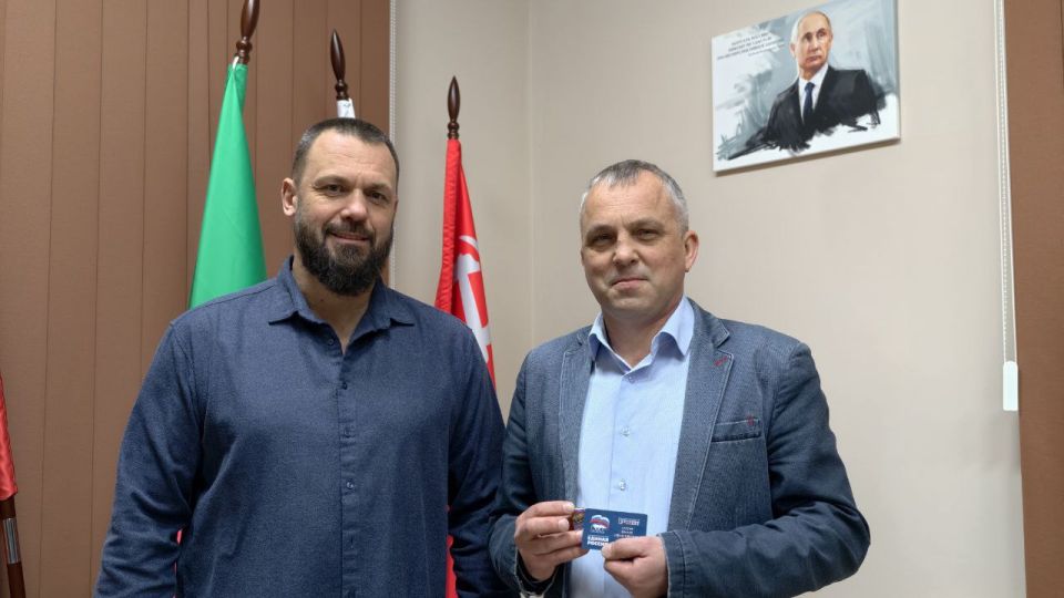 Секретарь Бердянского местного отделения партии «Единая Россия» Алексей Кичигин в торжественной обстановке вручил партийный билет Михаилу Волкову, сотруднику Администрации Бердянского муниципального округа.
