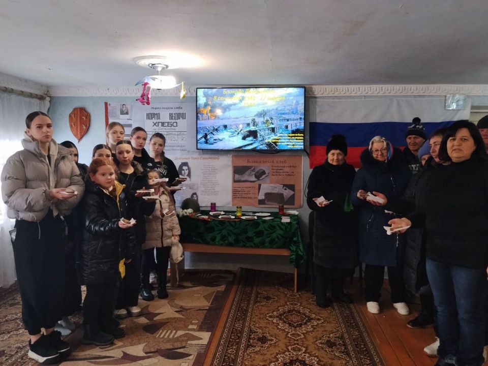 Патриотический час «Блокадный хлеб» прошел в библиотеке села Николаевка и в Дмитровском Доме культуры совместно с Центральной библиотекой села Дмитровка. Их цель — сохранить историческую память о героизме жителей осаждённого города, воспитать патриотизм и историческую грамотность, укрепить связь поколений и помочь молодёжи осознать ценность мира и свободы.