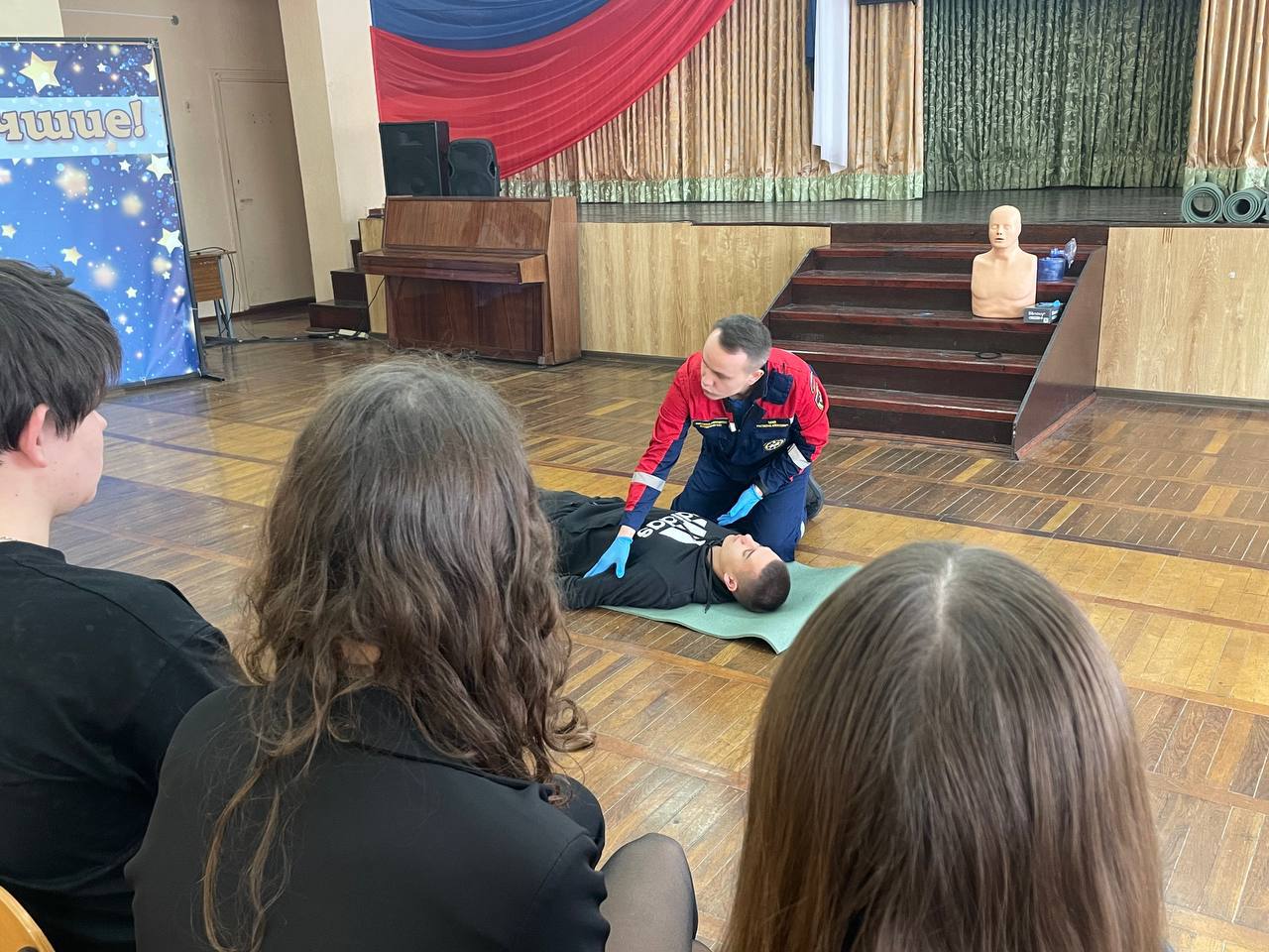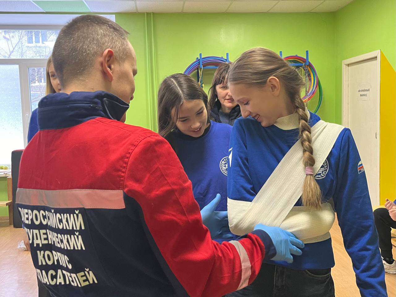 Побывали в СОШ № 11, где вместе с юными спасателями ШСО «Авангард 11» отрабатывали навыки наложения шин и повязок. Также провели занятие в Бердянской СОШ № 16, обсудив алгоритм оказания первой помощи — от оценки состояния пострадавшего и вызова медиков до проведения сердечно-легочной реанимации