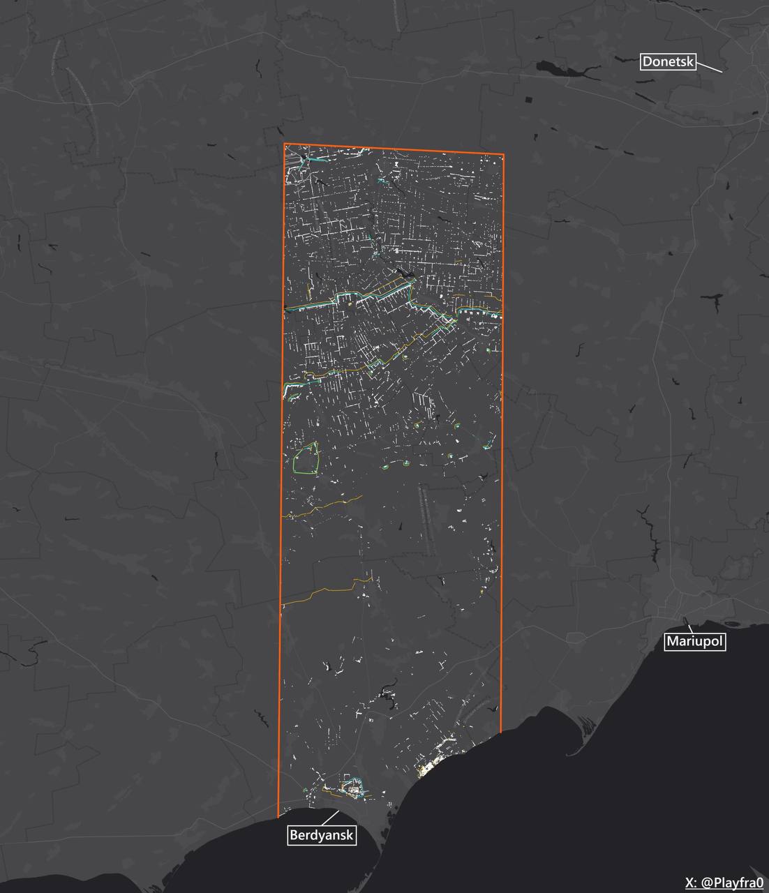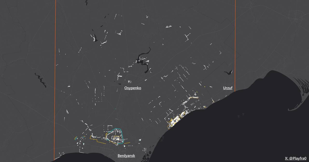 Любопытные спутниковые снимки российских позиций под Бердянском, созданным в 2023 году для сдерживания возможного украинского наступления на город