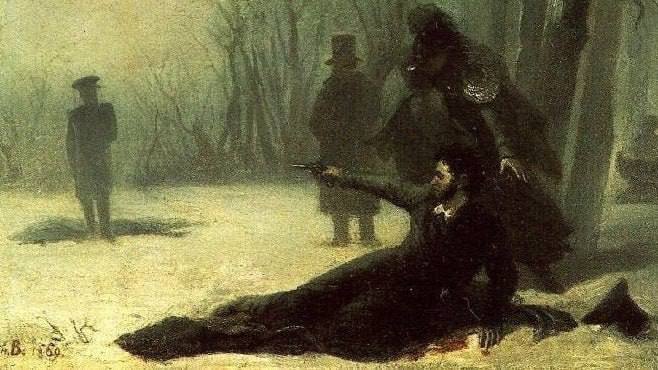 Последняя дуэль Пушкина. На Черной речке поэт смертельно ранен. Ответным выстрелом Дантес ранен в руку