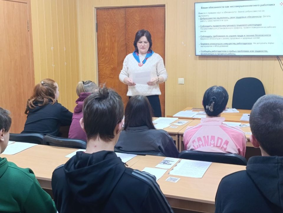 Проинформировали о нормах законодательства РФ, касающихся трудоустройства несовершеннолетних: возрастные ограничения, допустимая продолжительность работы, запрещённые виды работ, документы для трудоустройства, особенности трудового договора и оплаты труда. Особое внимание уделили вопросам легализации трудовых отношений и профилактике теневой занятости.