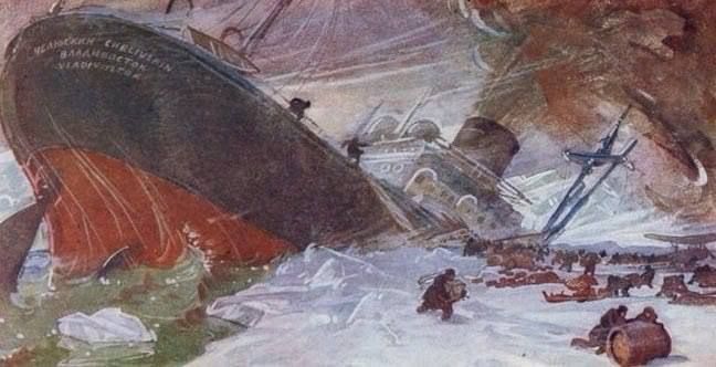 В Чукотском море раздавлен льдами пароход «Челюскин». Начало эпопеи по спасению 104 членов экспедиции (руководитель О.Ю.Шмидт)