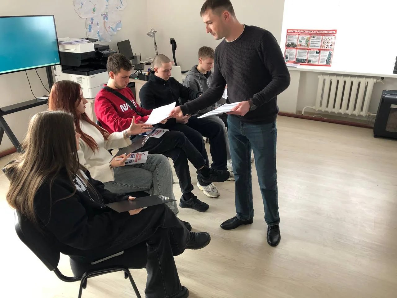 Сегодня в территориальной избирательной комиссии №7 Бердянского муниципального округа состоялся «День открытых дверей», посвящённый Дню молодого избирателя. Гостями комиссии стали студенты ФГБОУ ВО «Азовский государственный педагогический университет им. П.Д. Осипенко». Председатель ТИК рассказал об истории формирования избирательной системы и ознакомил студентов с работой территориальной комиссии и деятельностью Избирательной комиссии Запорожской области.