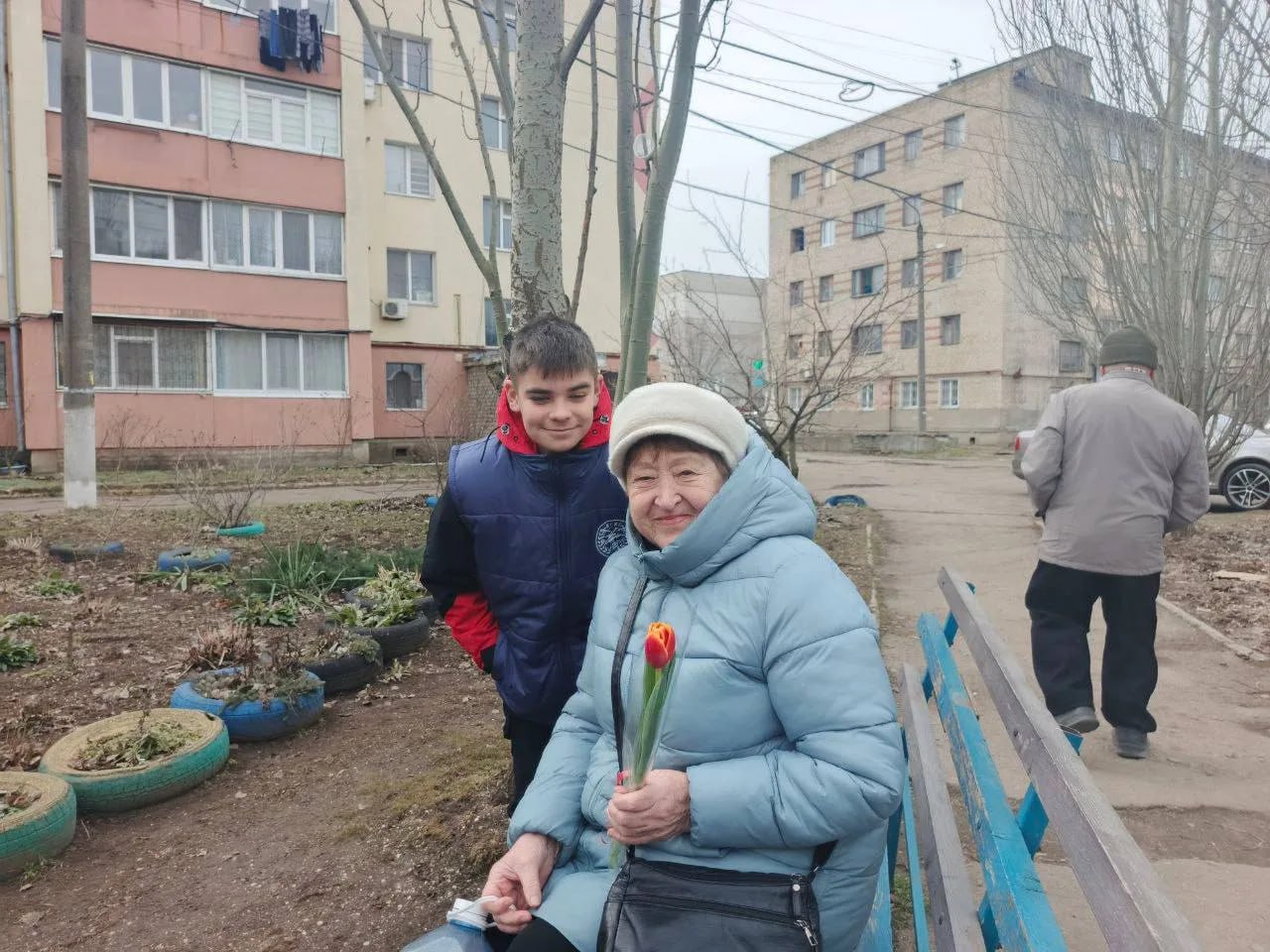 К акции «В благодарность за службу!» присоединяются активисты ШСО «Буревестник» Бердянской СОШ № 20, которые не только поздравили прекрасную половину человечества на улицах города, но и записали трогательный поздравительный ролик