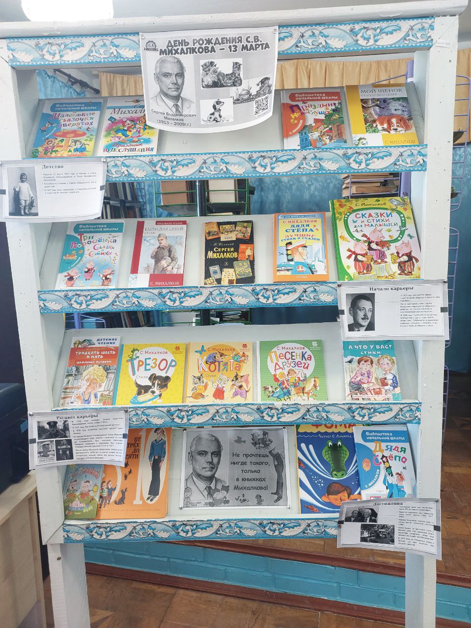 Особое внимание на выставке уделено детским произведениям С. В. Михалкова, которые на протяжении десятилетий остаются любимыми у юных читателей. Гости могут познакомиться со сборниками стихов и сказок, в том числе с историями о дяде Стёпе и котёнке по имени Гав. Выставка напоминает о вкладе писателя в развитие детской литературы и дает возможность новым поколениям открыть для себя творчество классика.