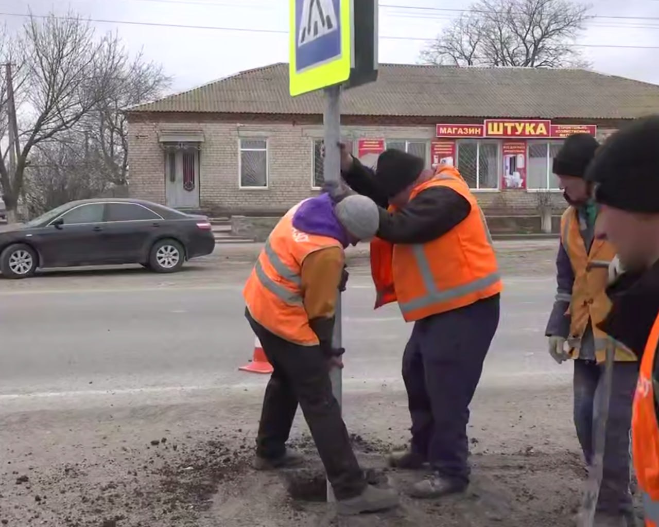 В Бердянском муниципальном округе сотрудники «Управления автодорогами Запорожской области» устанавливают дорожные знаки