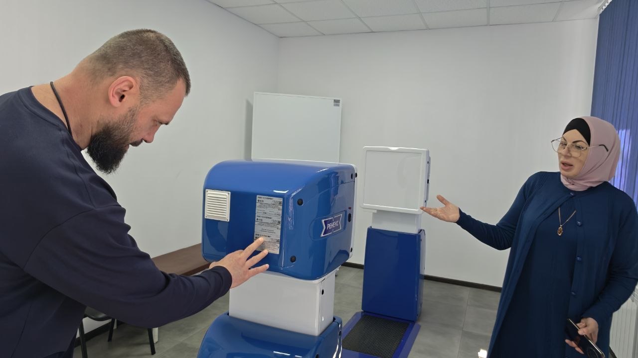 Глава интересовался в первую очередь качеством медицинского обслуживания в стационарных отделениях больницы, оснащенностью необходимым мед.оборудованием, условиями работы персонала. Также Алексей Николаевич осмотрел специализированный рентген-кабинет медицинского учреждения и ознакомился с новым флюорографом.